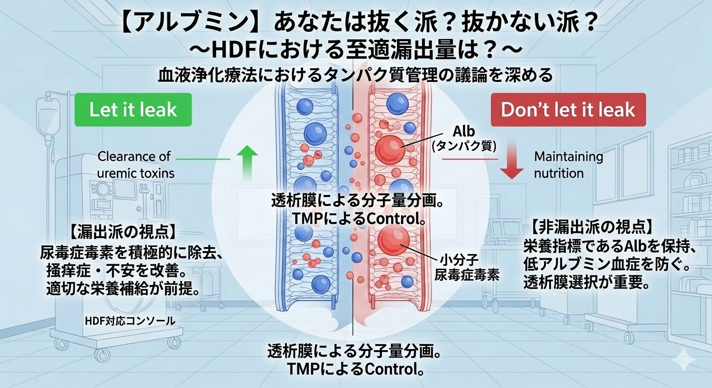 HDF否定派の方も居る中、HDF施行の是非という中で一番の議論に上がるのはやはりアルブミン漏出の是非、そしてその量ではないでしょうか。
