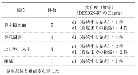 これら医療機器などが原因で発生した創傷の事を、医療機器関連圧迫創傷(Medical Device related Pressure ulcer : MDRPU)と呼ばれるようになっています。2)