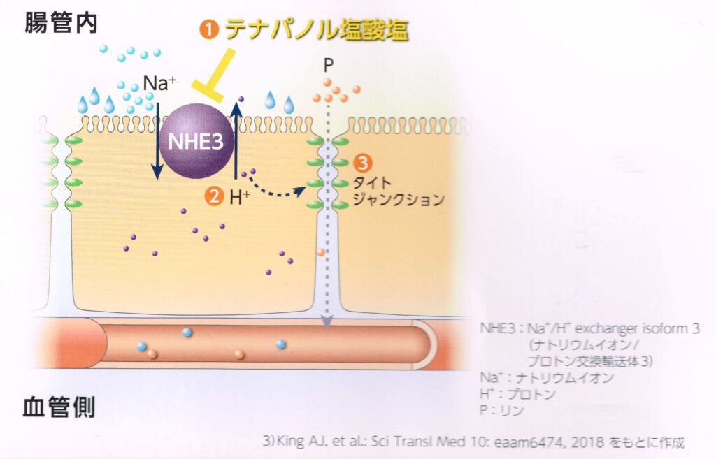 2)King AJ ,Inhibition of sodium/hydrogen exchanger 3 in the gastrointestinal tract by tenapanor reduces paracellular phosphate permeability :et al.:Sci Transl Med 10:eaam6474,2018