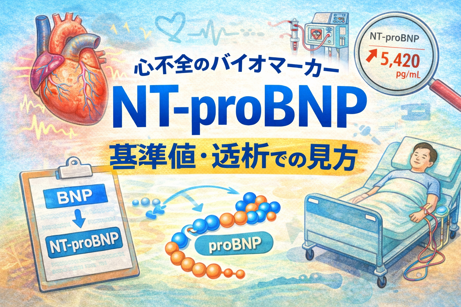 NT-proBNPは様々な場面で用いられます。それは心不全でも透析でもです。