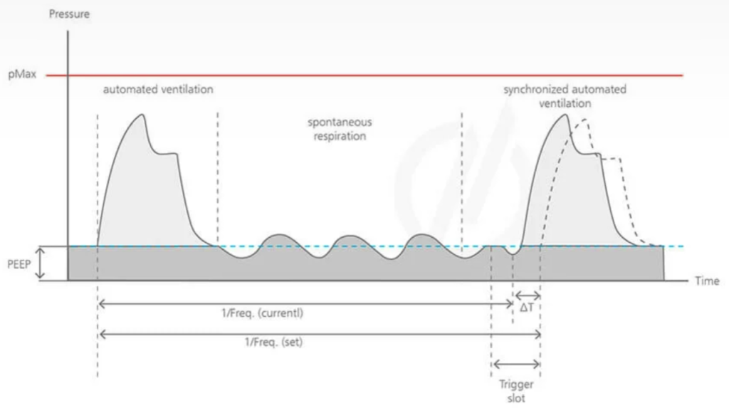 “同調ウィンドウ”あり(同期させる窓)(weinmann-emergency.com)機器・設定によるが、考え方は「自発同調+バックアップ」