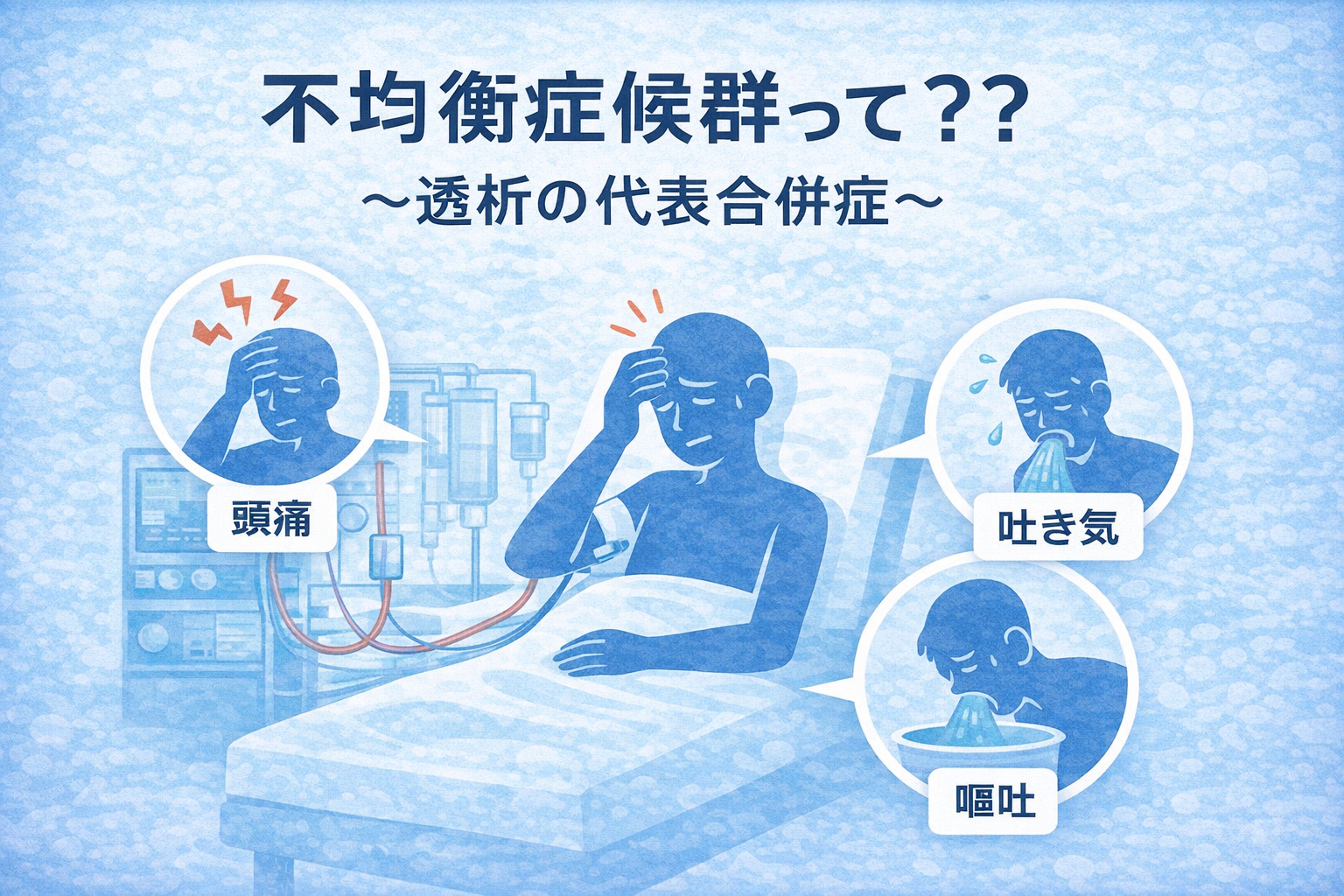 不均衡症候群とは、透析導入時などに起こる一連の神経学的症状の総称であります。では具体的にはどのような症状を呈するのでしょか。