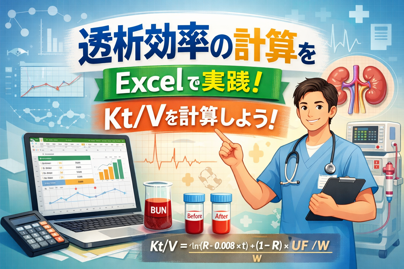 この方法を用いることで、実臨床においても簡単に新里式Kt/Vを算出でき、透析の効果をより正確に評価できます。