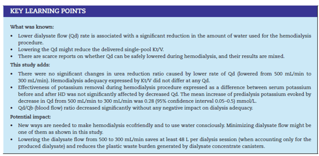Keywords: dialysate flow, dialysis adequacy, green nephrology, Kt/V, water