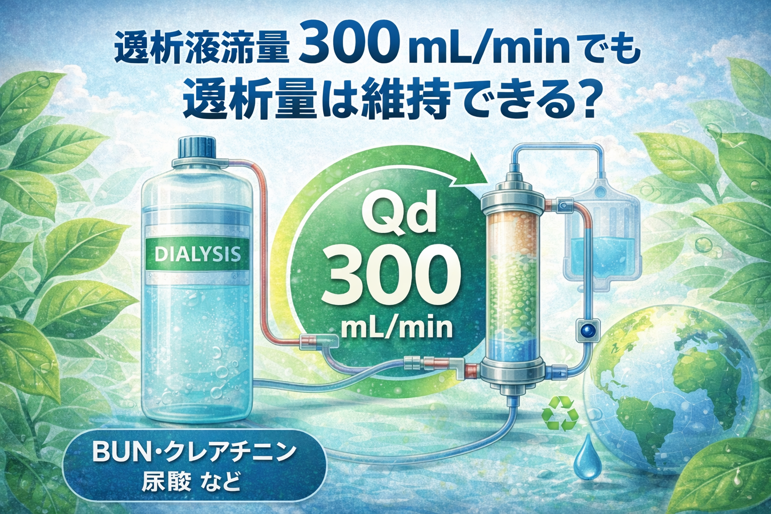 透析の適正を最適化するため、透析液流量(Qd)500 mL/分が一般的に使用されている。しかし、この高Qdは水消費量および環境への影響を増大させる可能性がある。Qdを300 mL/分へ減少させることでこれらの懸念を軽減できるかもしれないが、透析量および生化学的指標への影響が懸念されている。