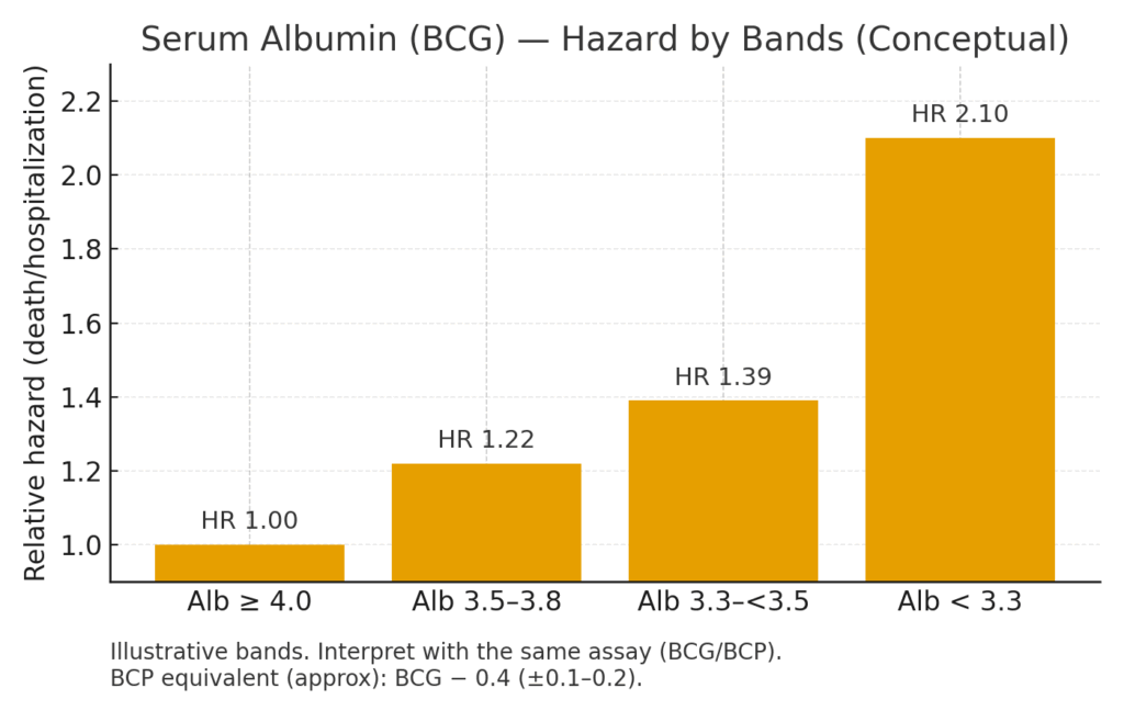 アルブミンは栄養の純マーカーではないが、予後の強いリスク指標