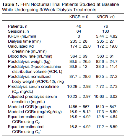 (すべての患者が週3回透析を受けていた期間のデータを対象とした解析)FHN夜間試験(Nocturnal Trial)のリポジトリアーカイブに含まれるベースライン期の一部透析セッションでは、尿素およびクレアチニンの両方を含む動態モデリングデータが利用可能であった。