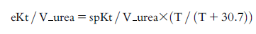 URRの値から、**Daugirdasの式II(Daugirdas II)**などの推定式を用いてspKt/V-ureaを算出する[文献12]。ここで、