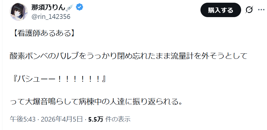 さてさて、先日とある看護師(と思われる)アカウントが、酸素ボンベの取り扱いでとても危険なツイートをしていました。