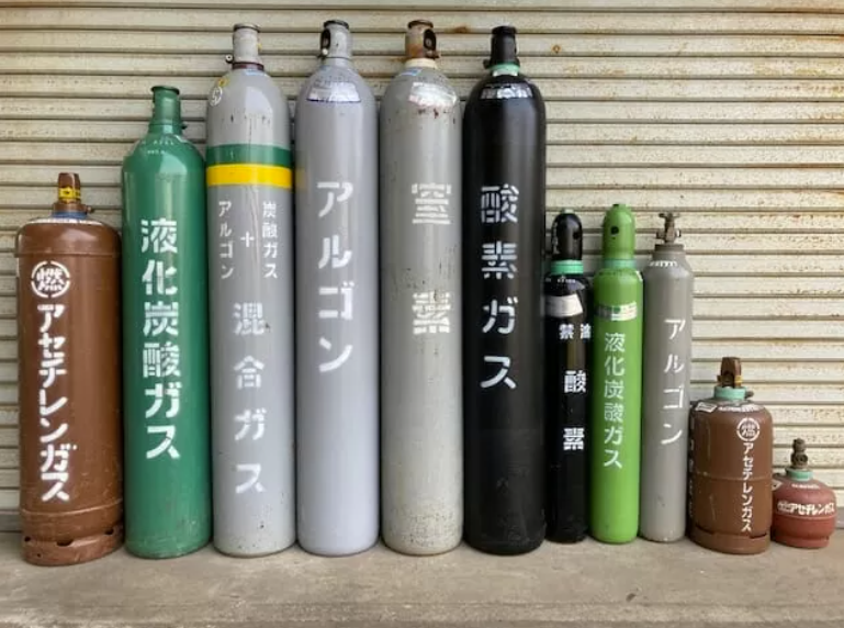 酸素ボンベは画像の通り、黒色と定まっています。その他にも様々なボンベがあり、それぞれに独立して定まっています。これは「高圧ガス保安法」により定まっています。
