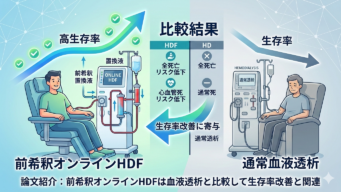 血液透析 前希釈オンラインHDFは生存率を改善する?HDとの比較と置換量(40L/50L目安)の論文解説